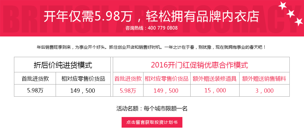 BD美式摩登內衣加盟熱線(xiàn):400 779 8866
